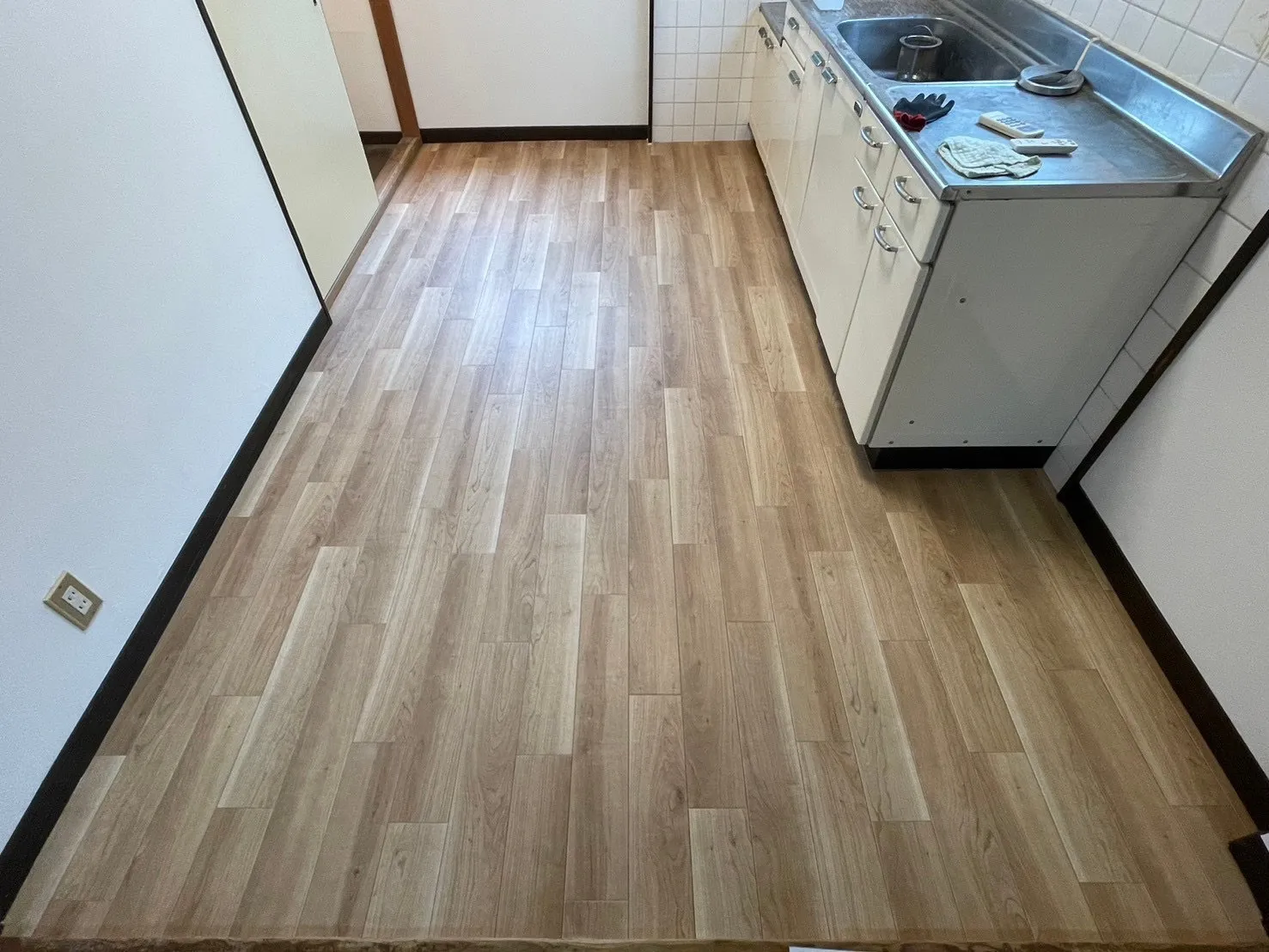 賃貸物件の退去後、クロス(壁紙)とクッションフロアを張り替えた原状回復工事の事例です。